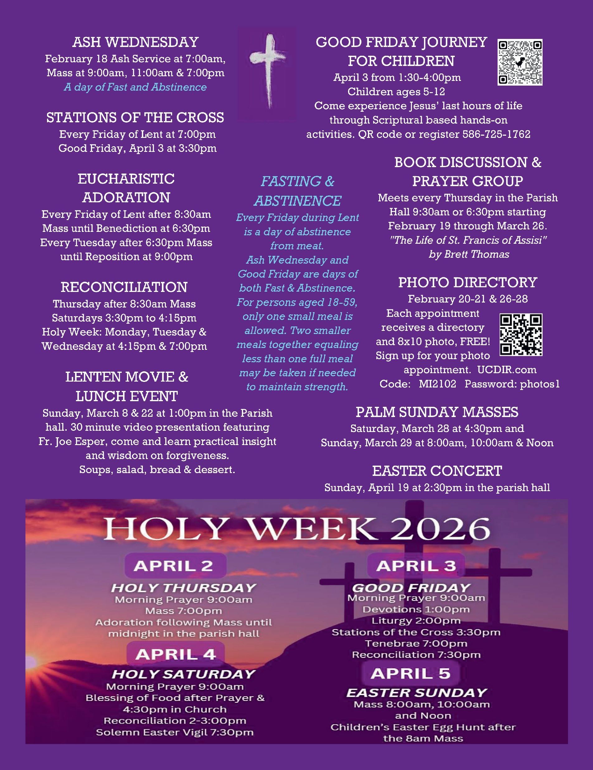 LENTEN 2026 MASS & EVENT SCHEDULE